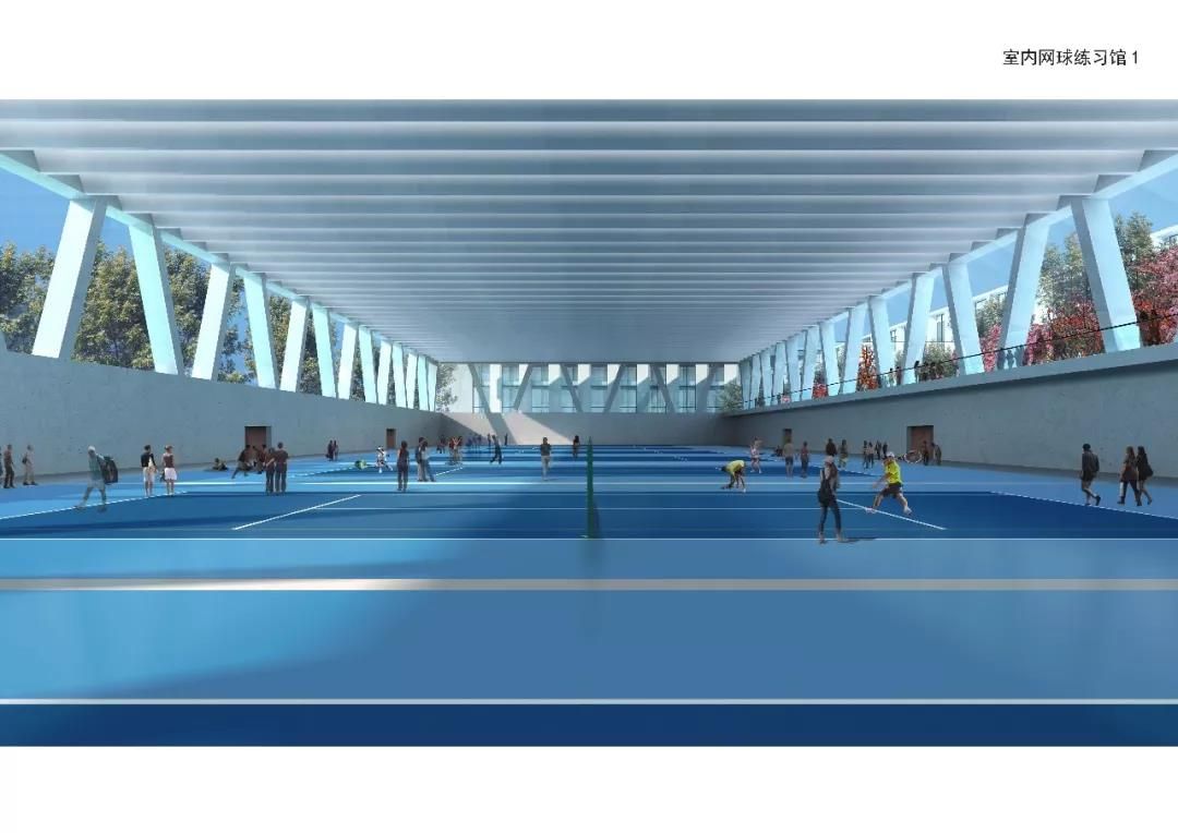 主要建設中心賽場,室內網(wǎng)球練習館(含常規(guī)場地、網(wǎng)球中心配套用房、VIP室內場地及其配套服務用房、學員公寓)單跨跨度約42米,室內網(wǎng)球練習館(紅土場地),籃球館,教員公寓,室外網(wǎng)球比賽場,室外網(wǎng)球練習場及地下停車場。