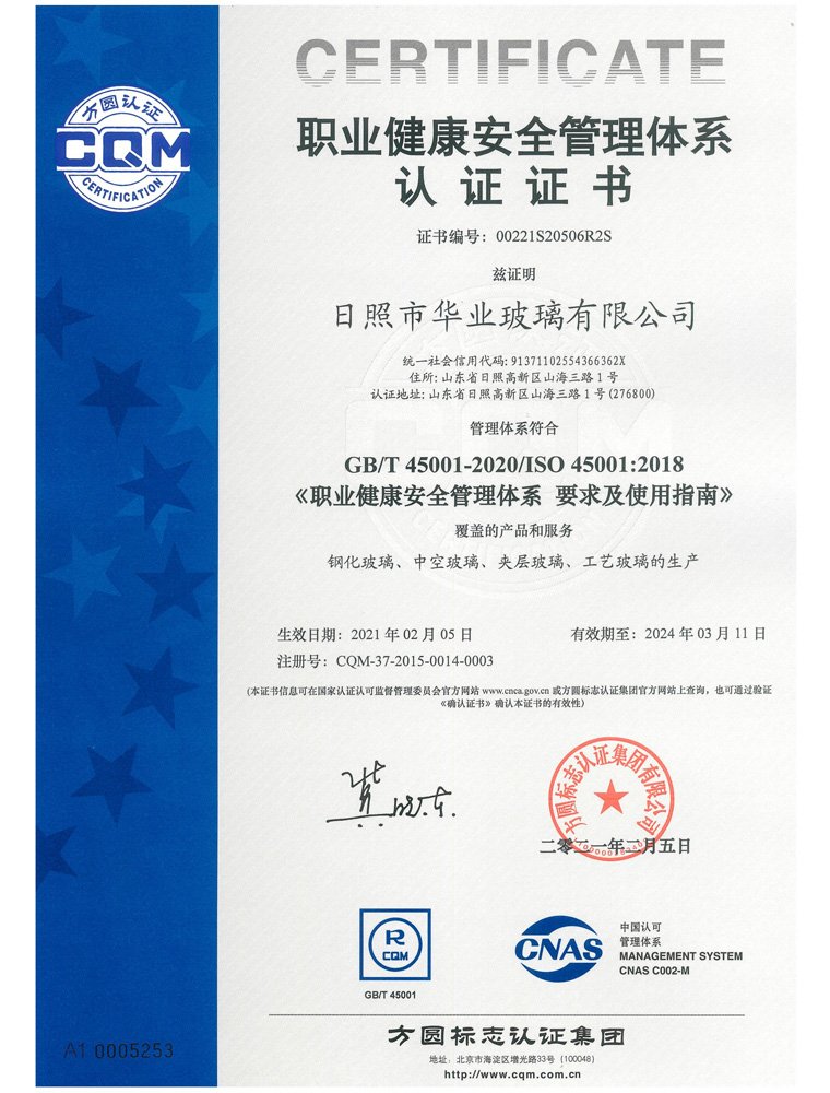 職業(yè)健康安全管理體系認(rèn)證證書